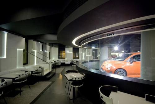 今回オープンしたフィアット「モーター・ヴィラージュ」は、オークション・ハウス「クリスティーズ」パリ本社や高級画廊街に近いセレブ感覚溢れるエリアであるものの、他メーカーの既存ショールームと比べて凱旋門から最も遠い。
